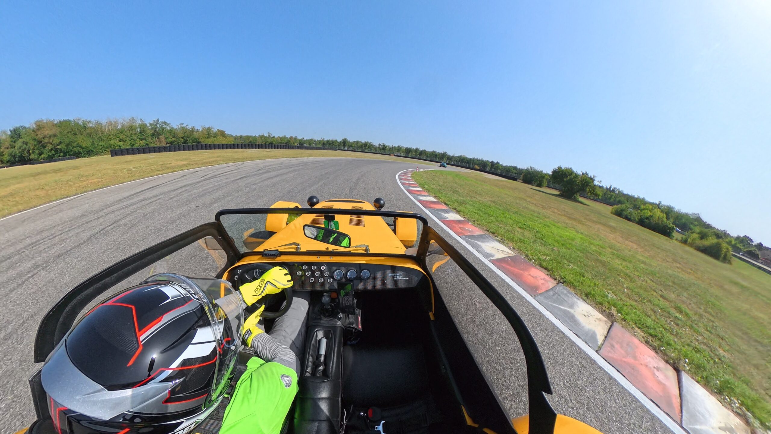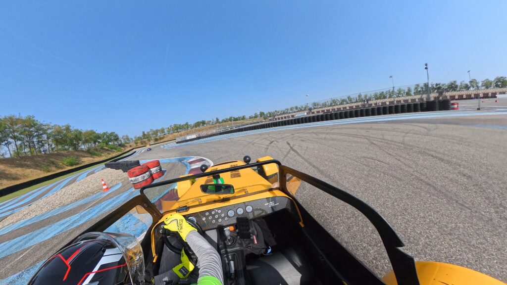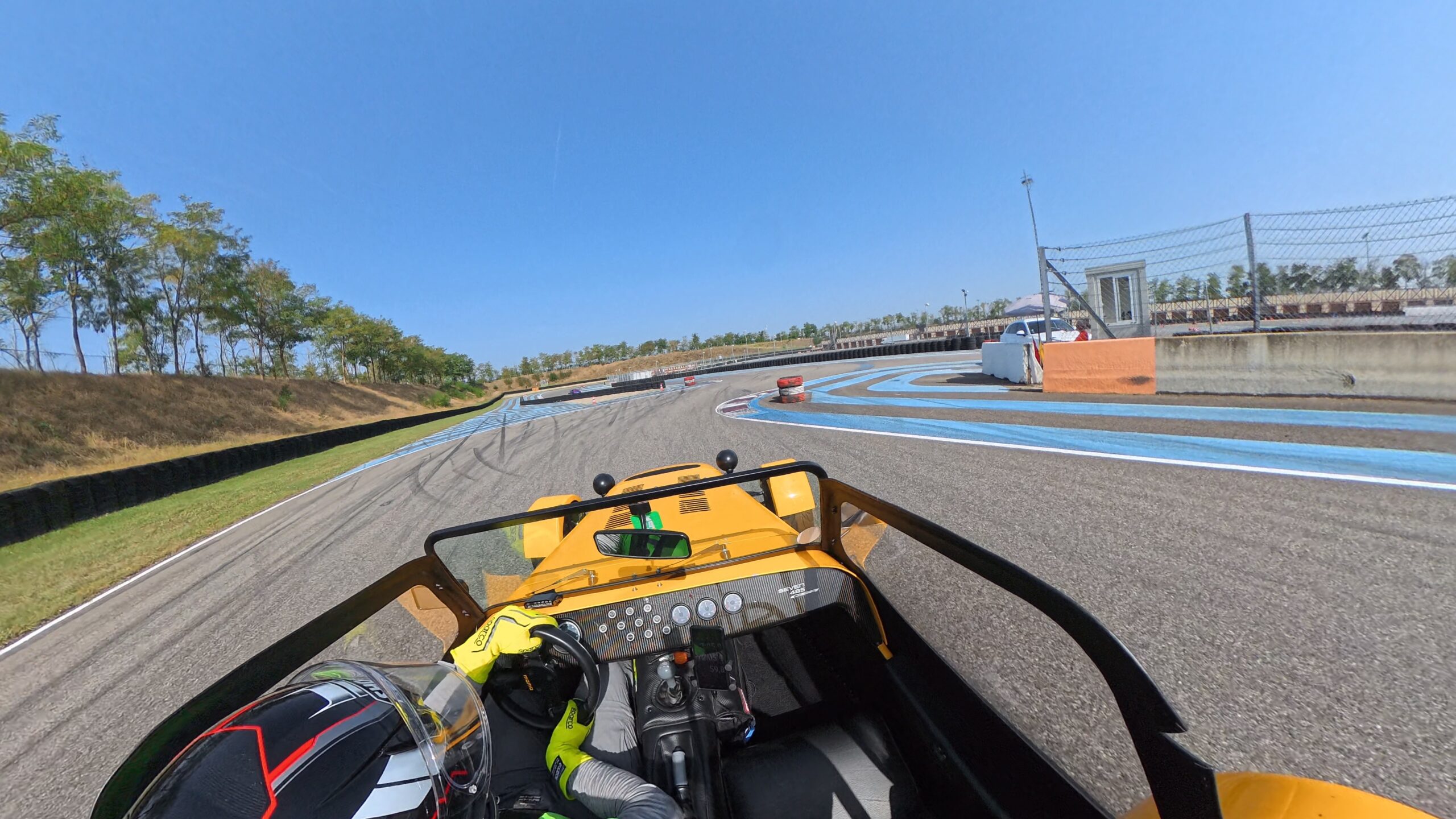 Am Nachmittag steigen die Temperatur deutlich und es fehlt etwas Leistung, doch durch mehr Übung und eine saubere Linie schaffe ich mehrere schnelle Runde hintereinander und knacke die 1:47,27 – immerhin 4 Sekunden schneller als in der virtuellen Welt. Der Caterham erreichte dabei am Ende der langen Start-Ziel Gerade eine Spitzengeschwindigkeit von 195km/h. Da ich die Reifen noch für meine Sardinien Reise brauche, lasse ich es am späteren Nachmittag langsam ausklingen.